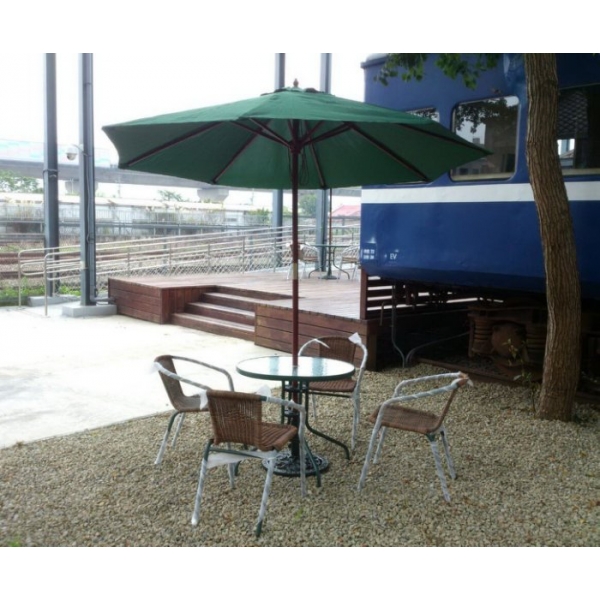【加百列庭園休閒傢俱】歐式休閒風情~PE藤椅一桌四椅組(含綠色傘及鑄鐵傘座)~戶...DETAIL -